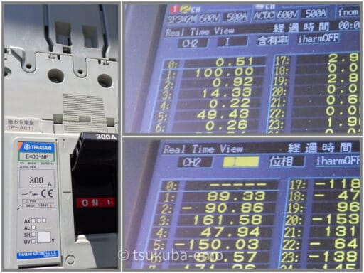 何か所か空調主幹ブレーカーで測定しました。