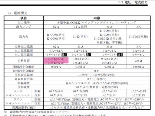 ちなみにNF試験器の各定格負荷