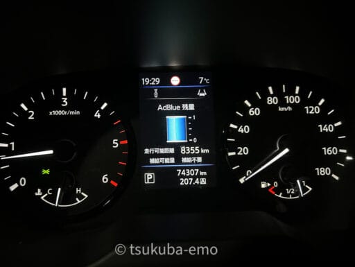 前回から7525kmの走行で アドブルー補給可能量10リットルの 表示となりました。 前回は8000kmくらいだったので きっと夏場は エアコンで燃費が下がるから アドブルー消費も…