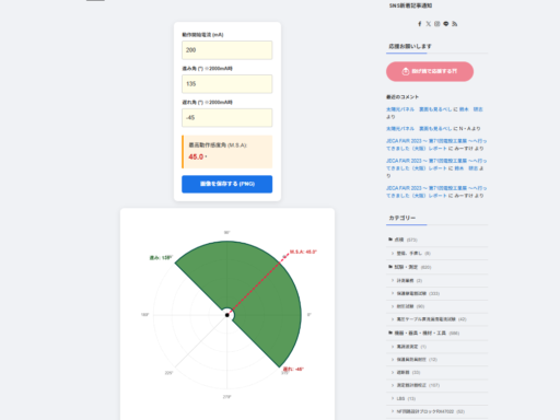 ホームページ上で、0度を右側、動作開始電流(mA)と,2000mAでの動作範囲を進み(°)から遅れ(°)を入力して、数値の表示および最高動作感度角も表示して地絡方向継電器の位相特性図を作図できるようにしたい