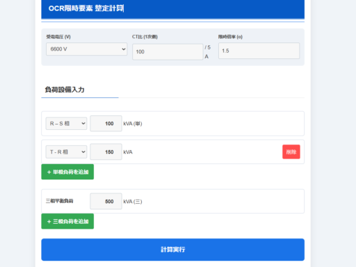 OCR(過電流継電器)限時要素整定の自動計算フォームを