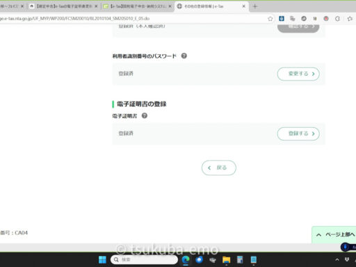 e-Taxの「利用者情報登録」にて、新しい電子証明書の情報を登録・更新する必要があります。