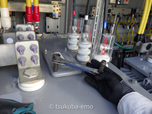 せとものの碍子付近で工具を振って