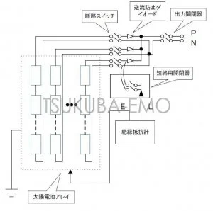 (逆流防止ダイオードの太陽電池側と遮断スイッチの間)