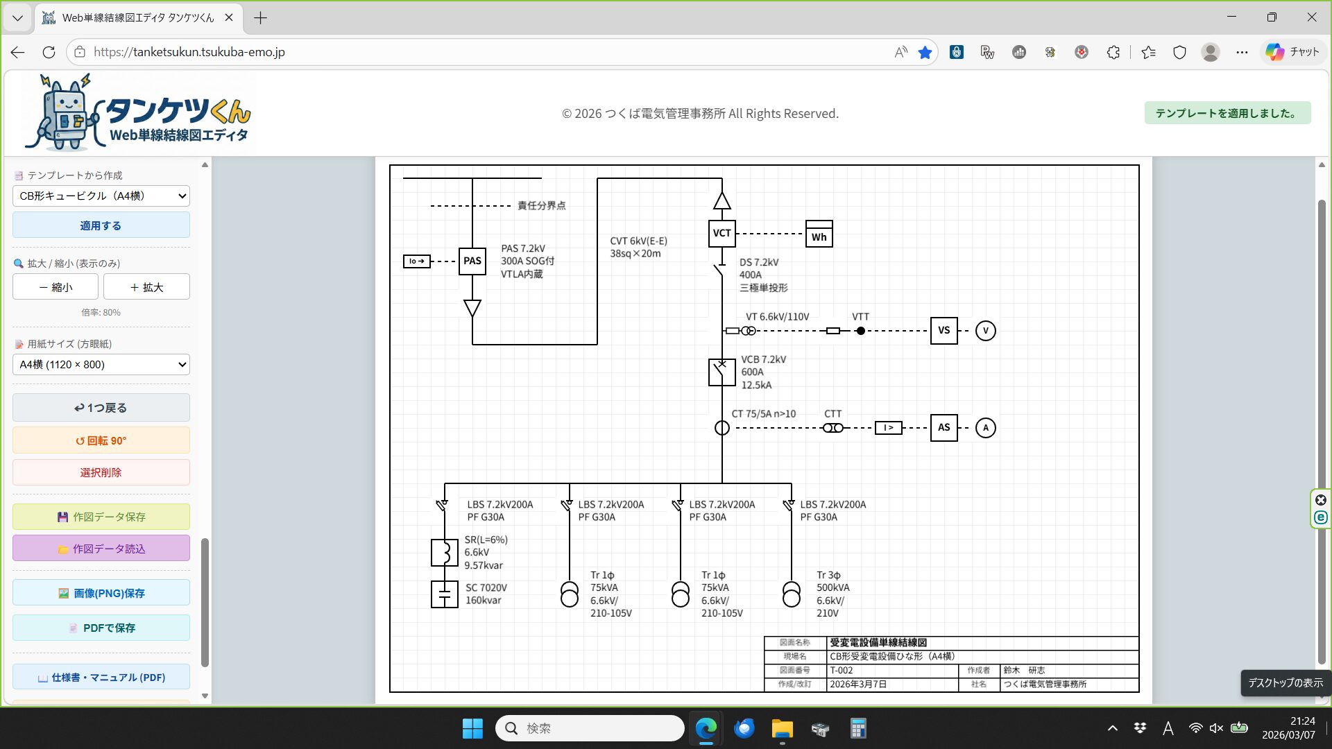高圧単線結線図を