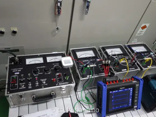 昨日書いた現場での 高圧ケーブル直流漏れ電流試験による ケーブル劣化診断。(新設) こんなセッティングで 試験を行いました。 3相同時記録のため メモリハイコーダ MR8875 | 製品情報 - Hioki メモリハイコーダ | 電圧・温度ユニット MR8902 | 製品情報... -