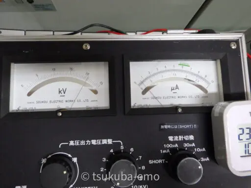 耐圧試験を請負で おこなってきました。 対象は、 屋外変圧器とそれに至る 高圧ケーブル。 印加点を 開閉器側からとして、 シールドアースのない電圧印加用ネオンコードを 離隔養生して繋いだつもりでしたが、 緩んでしまったようで キュービクルの フレー... -